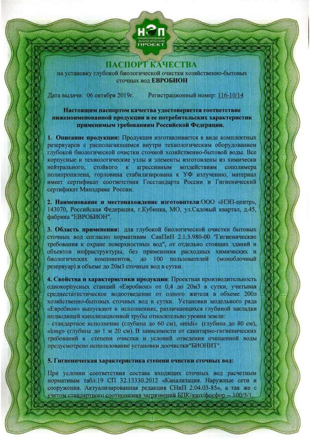 Септики Евробион производятся компанией Национальный Экологический Проект, которая производит различные станции глубокой биологической очистки и станций по очистке воды. Специалисты НЭП обладают большим оптимальным и современным производством, что позволяет быстро производить высококачественную продукцию.